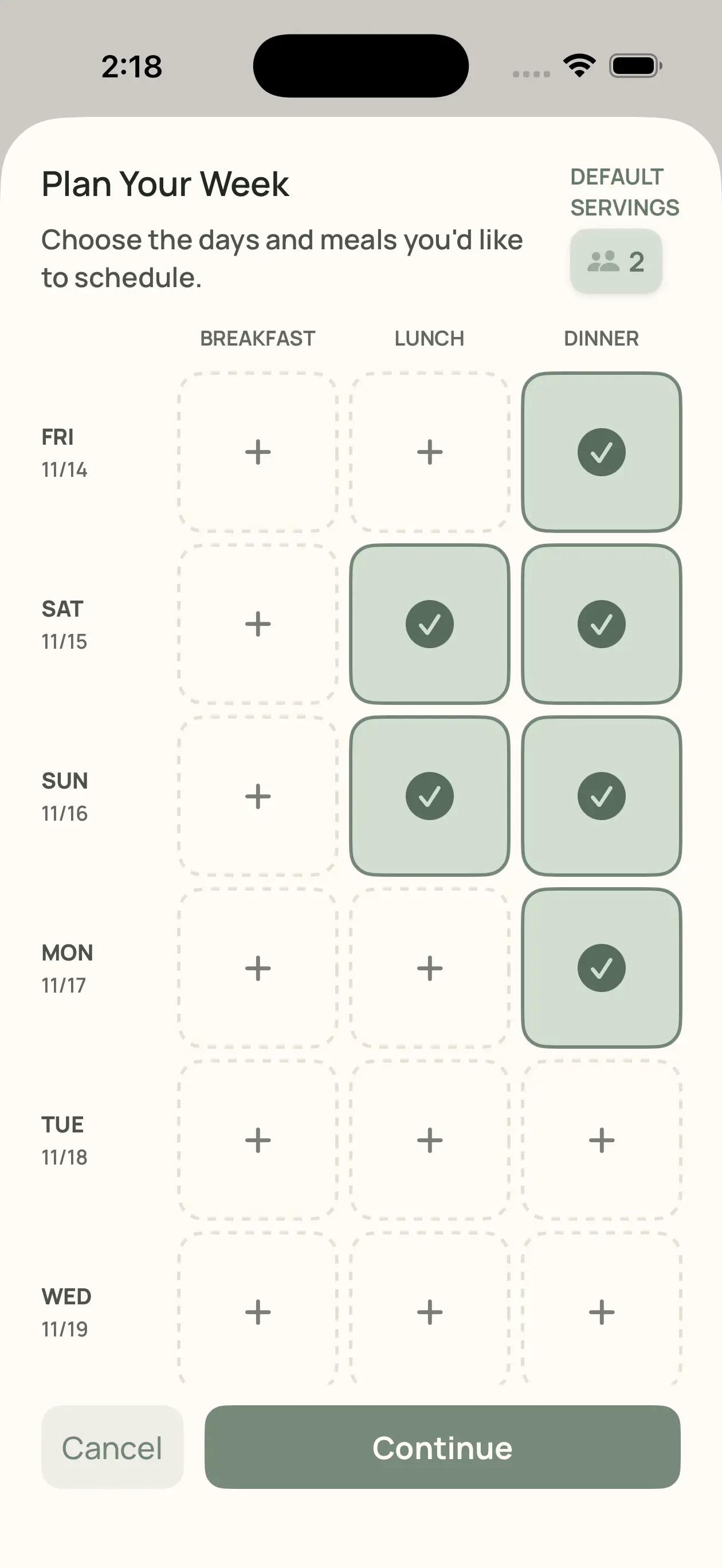 Pick the meals you want planned for you. We'll take it from there.